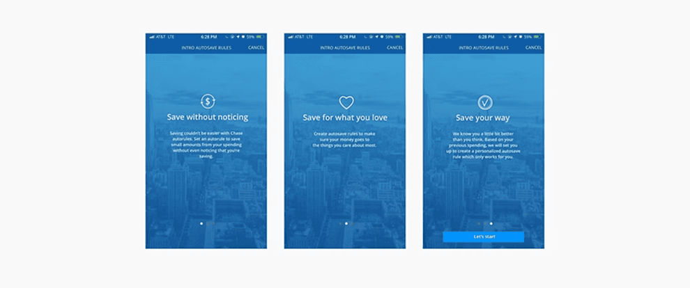 I then created high-fidelity wireframes in Sketch for a mobile app. The design were all based off of Chase’s existing mobile UI, often requiring me to match pixel to pixel. For autosave rules, I inspired from Finn’s current features. The wireframe demonstrated the look and feel of the new features and encourage useful feedback from stakeholders. With the high-fidelity wireframes, I created a mobile prototype in Marvel app to gather usability data from Chase users.