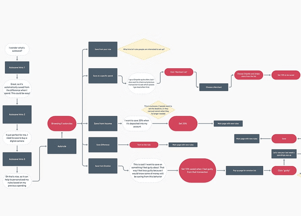Then, I delved deeper into two important features: autosave and budget. I created task flows for Josh's initial autosave setup and setting up next month's budget. This helped me better grasp how personas behave and make decisions throughout the process, leading to a more informed design solution.