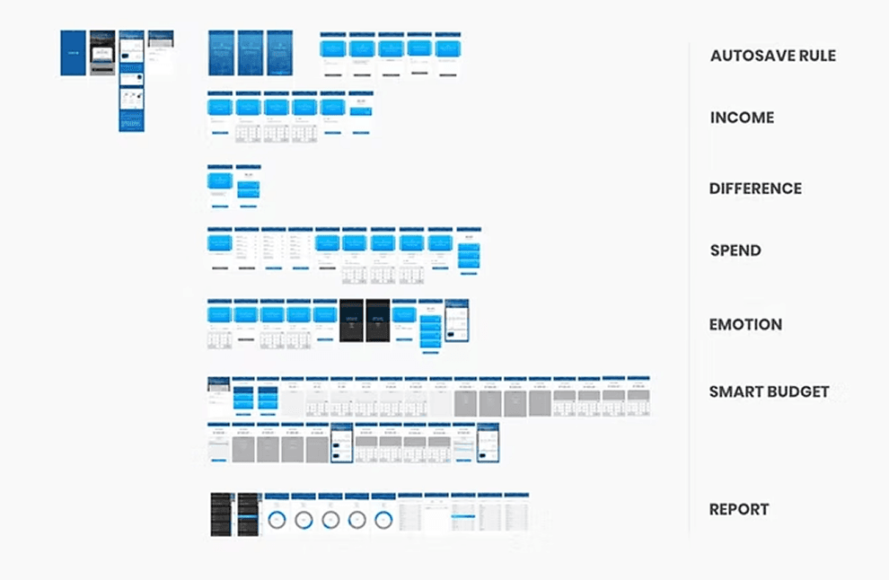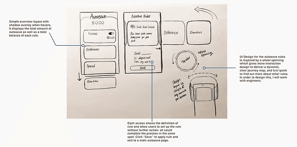 Based on the interviews I conducted and a survey specifically about saving, I was able to gather deep insights of users’ pains and needs. Most important data I learned that spending and savings are deeply related to each other and most of time, users save money to buy or spend for specific needs. Almost all of them need easier and better way to save more for their needs. The autosave features are directly made to solve their pains about saving.