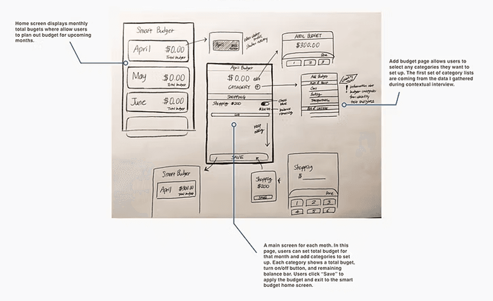 After defining and emphasizing with Josh and Emma, I started to define business goals and user goals to make sure I could build a solution to both sides. It’s so important to clearly understand what Chase’s original goals and what Chase could expect to achieve from starting to design a solution. Then these goals are across matched with users’ goals to ideate what are the common goals I want to design to solve.