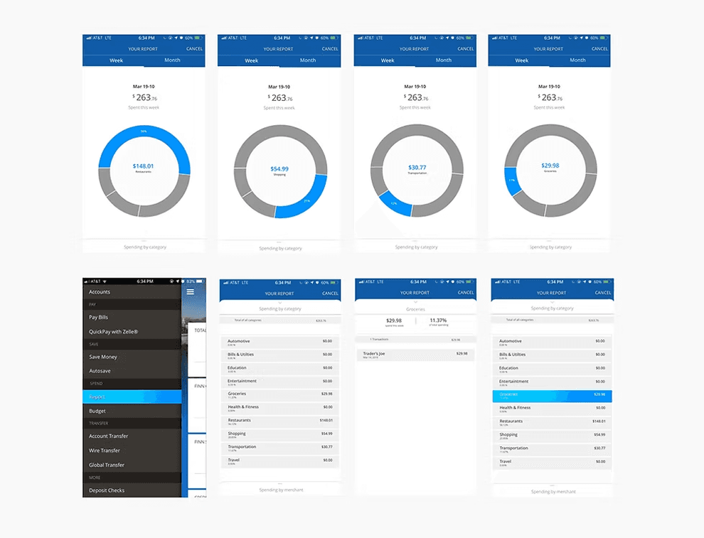 Information Architecture: Based on research findings, the app’s information architecture was restructured to support new personal finance features while preserving Chase’s existing navigation patterns. Autosave, budgeting, and reporting tools were organized around user goals, reducing friction and allowing new features to feel naturally embedded within the current app experience.