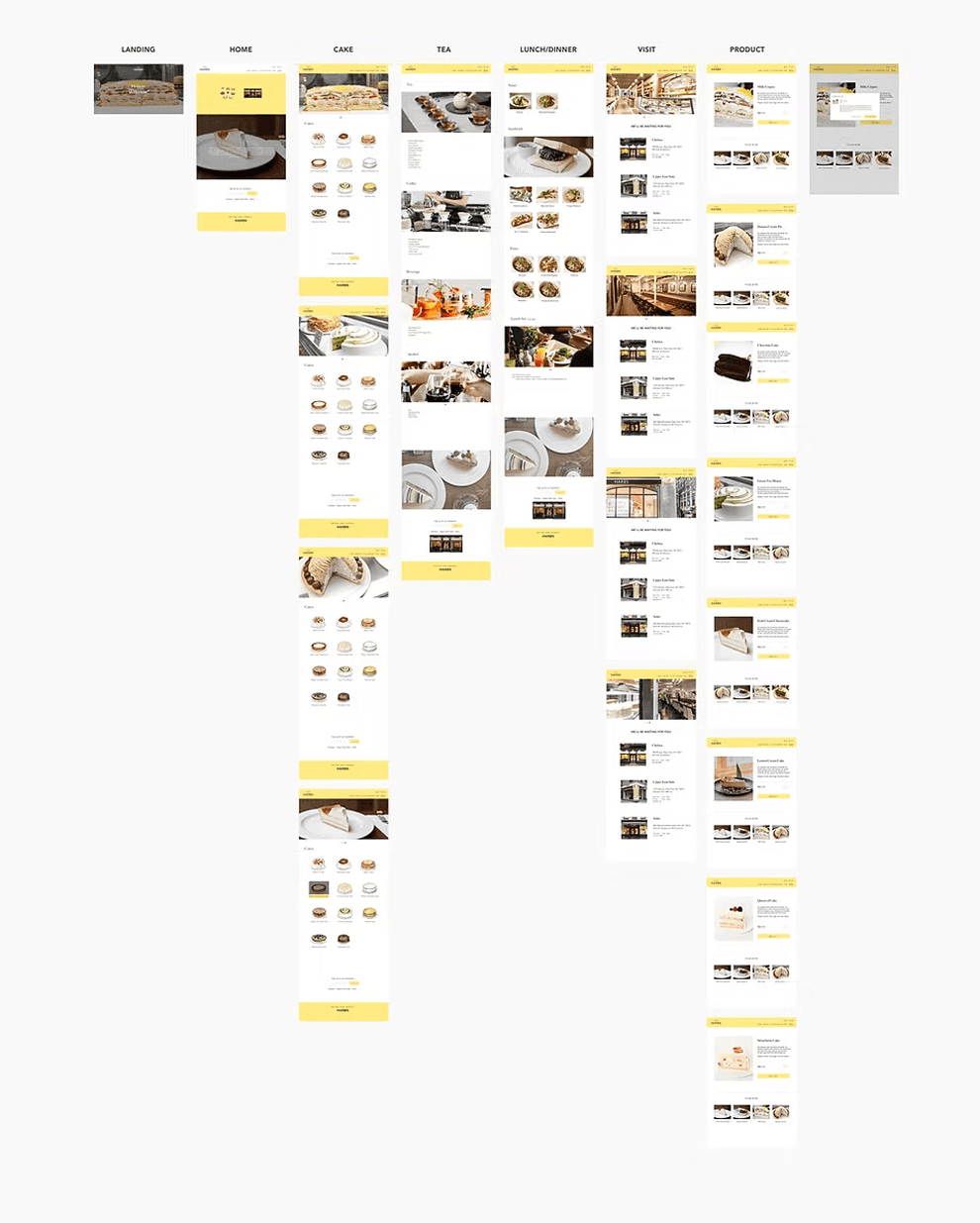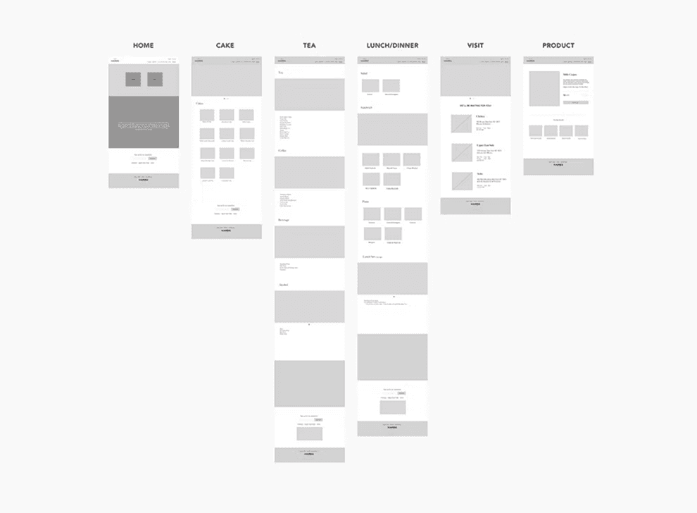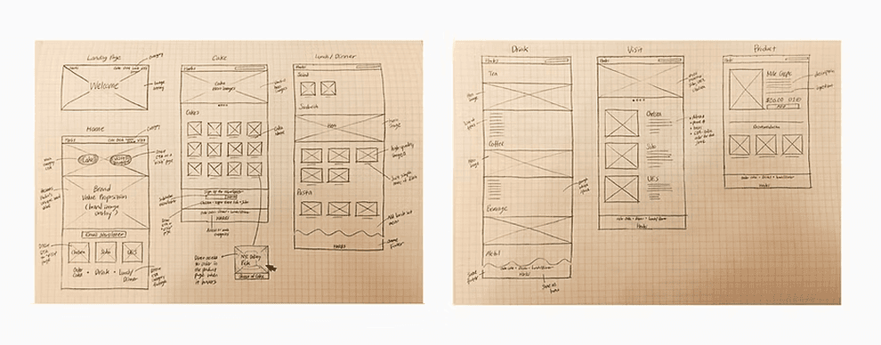 For designing the UI, I started out with rough sketches of the pages. Then I began to build a sketch wireframe to understand a whole process at a quick speed. I was able to quickly captures the layouts of all pages and understand clearly which pages I need to build. During this process, I referred to examples of restaurant websites and studied existing design patterns that make for a more intuitive user experience.
