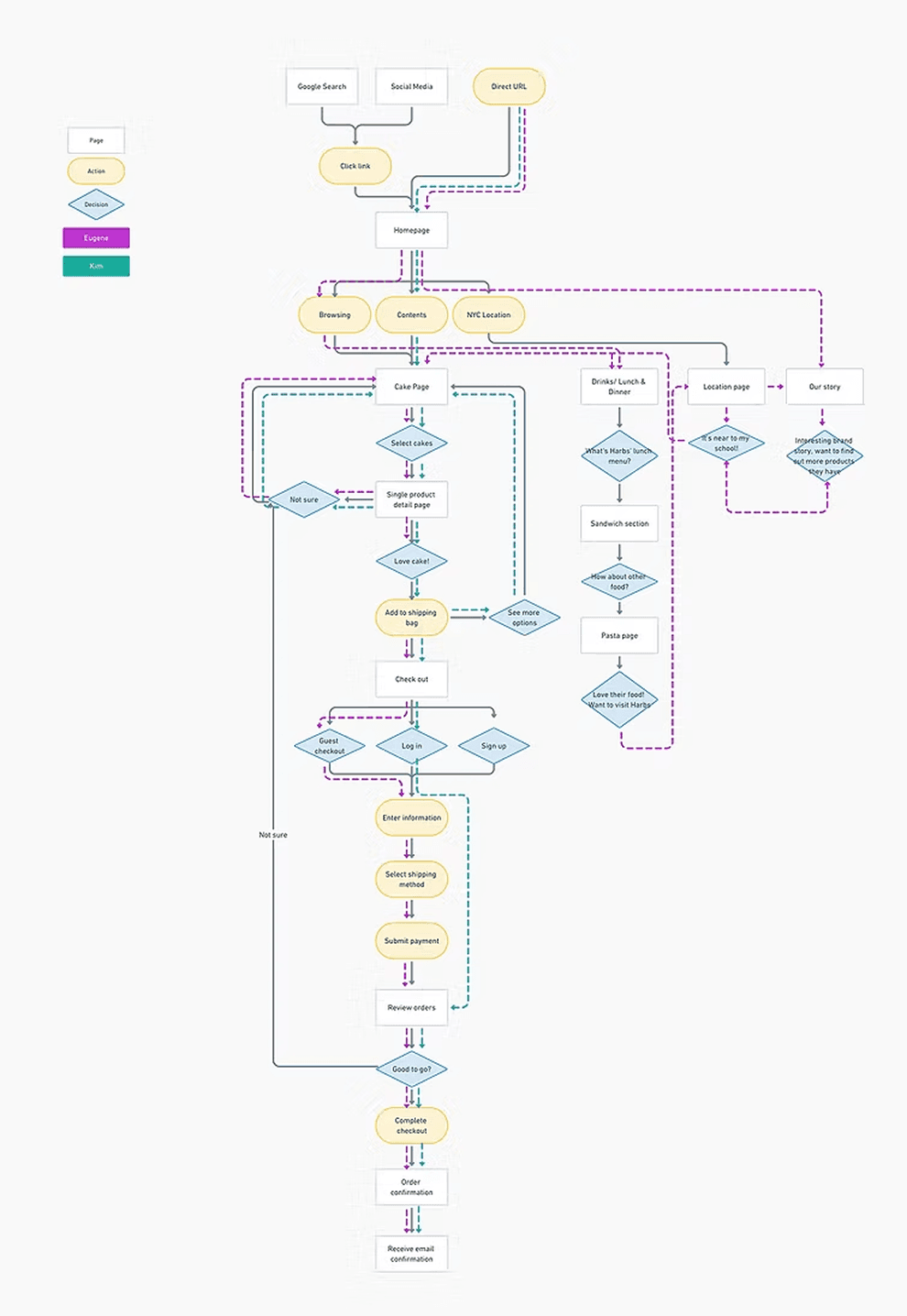 In my quest to delve deeper into the realm of customer experiences within the Harbs domain, I initiated a series of contextual inquiry interviews. The participants included a spectrum of individuals: 5 devoted Harbs patrons, 2 unacquainted with the Harbs experience, and a dedicated Harbs employee. This comprehensive exploration unfolded across three distinct locales: the vibrant enclaves of Soho, Chelsea, and the illustrious Upper East Side.