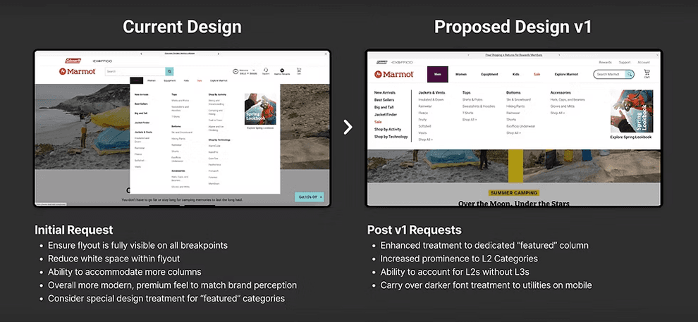 Newell Brands is a leading consumer products company with a portfolio of iconic brands such as Marmot®, Yankee Candle®, Graco®. Over the span of two years with the company, I worked on a number of differing work streams from International Migration, to the Product Discovery North Star Initiative. While doing so, making continuous delivery enhancements to the internal design system as well as the overall ways of working. Seen below are a just a few of the many delivered projects.