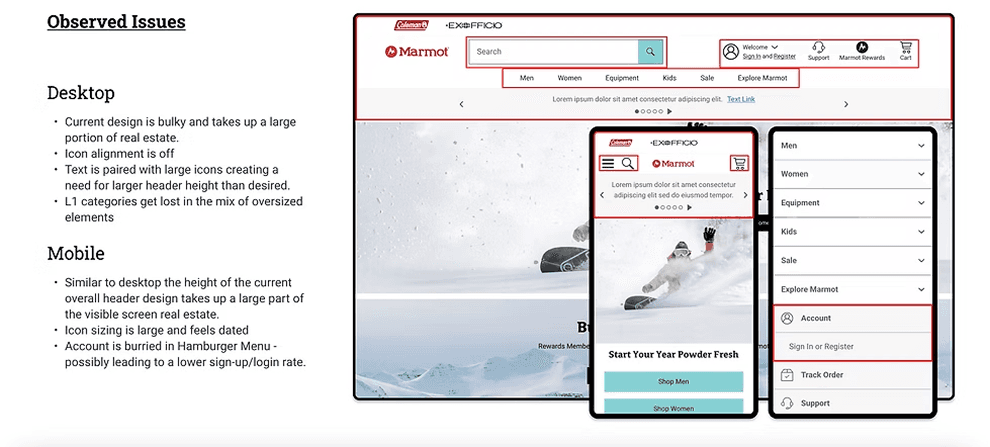 • Utility Navigation and Icons have been reported to feel dated